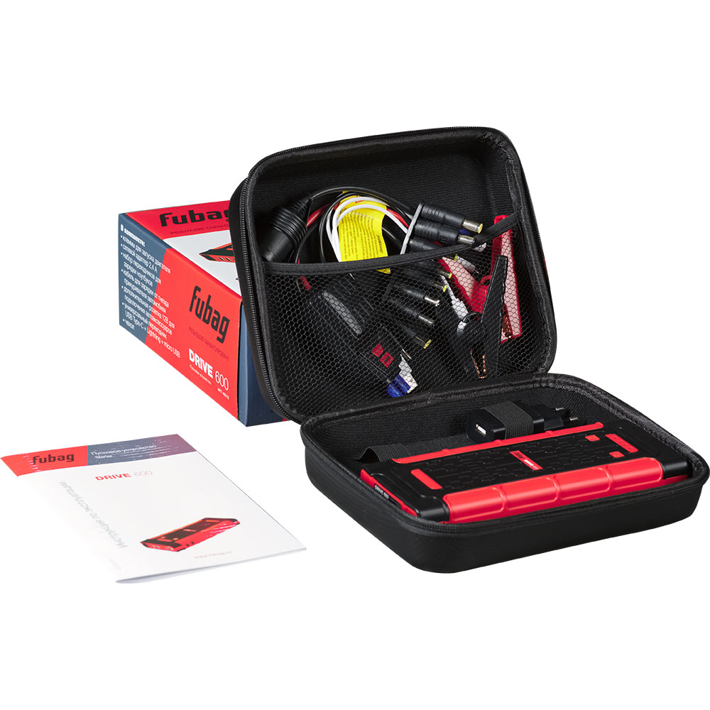 Пусковое устройство DRIVE 600 предназначено для запуска автомобилей объемом до 6 литров со свинцовым аккумулятором 12 В. DRIVE 600 работает на встроенном высокотехнологичном аккумуляторе. Для правильной работы устройства и для того, чтобы сохранить все рабочие характеристики встроенного аккумулятора как можно дольше, необходимо заряжать его после каждого использования и не оставлять устройство включенным. DRIVE 600 оснащен на входе разъемом type-C, который является современным стандартом зарядки всех электронных устройств. Данное устройство – незаменимый помощник в походе, командировке или дальних путешествиях т.к. с помощью его можно зарядить смартфон, планшет, а также различную аппаратуру. У пускового устройства широкий диапазон рабочих температур от -30°С до +50°С. Увеличенная емкость встроенного аккумулятора 18000 мА*ч позволяет осуществлять до 70+ запусков до полного разряда. В пусковом устройстве Drive 600 есть полезный режим BOOST (ускоренная зарядка аккумулятора большим током для уверенного пуска двигателя).Преимущества покупки пускового устройства FUBAG DRIVE 600: